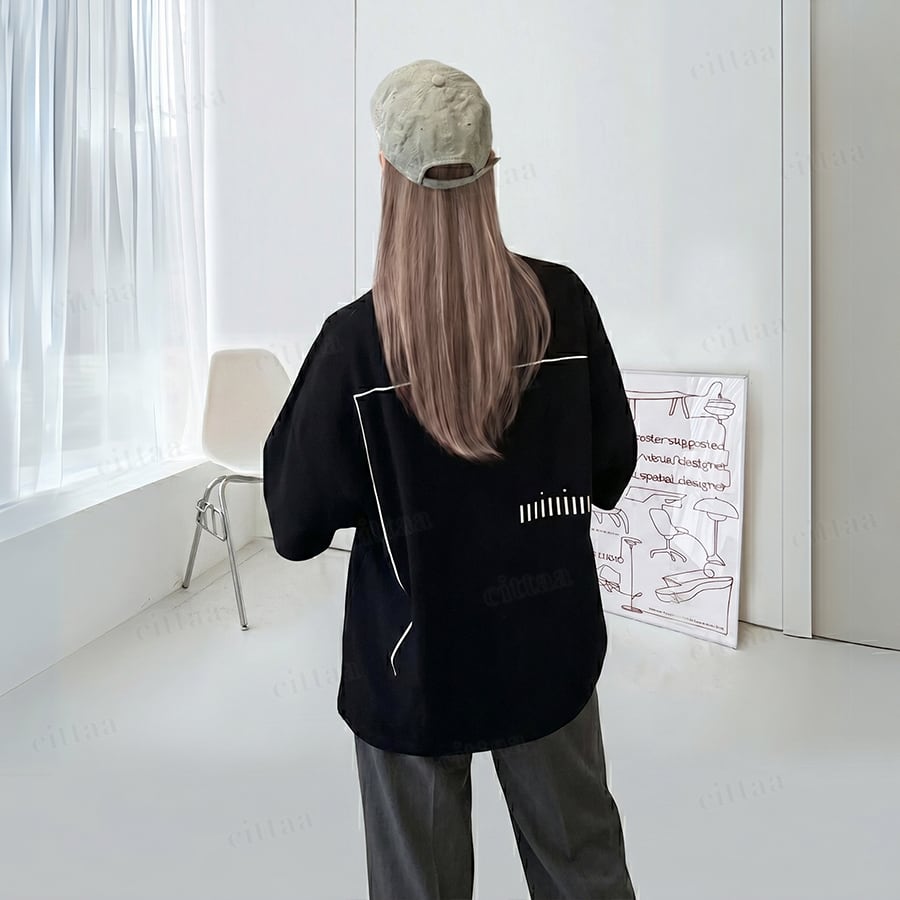 フロントとバックに施された細身のラインアートが、さりげなく個性を引き立てる1枚。主張しすぎない繊細なグラフィックで、大人っぽさをキープしながらしっかり着映え。シンプルに着るだけで雰囲気のあるスタイルが完成します。