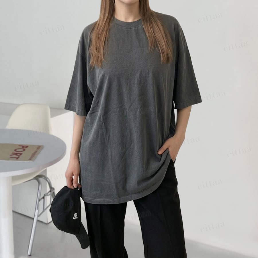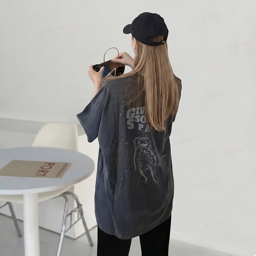 【即納】Y-4882 2026春新作♡SPACEプリントピグメント加工半袖Tシャツ チャコール 0407