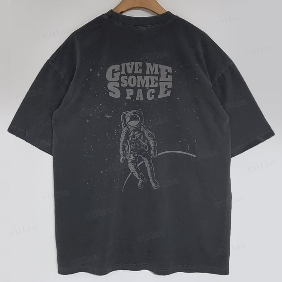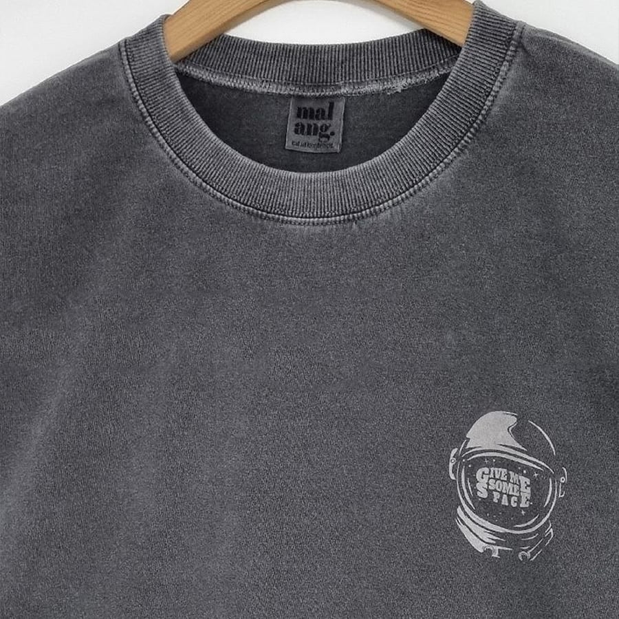 フロントとバックに施された宇宙プリントが目を惹くデザイン。ピグメント加工によるかすれた風合いで、ヴィンテージ感のあるこなれた印象に仕上がります。主張しすぎない絶妙な色味で取り入れやすく、1枚でしっかり着映え。ラフに着るだけで雰囲気のあるコーデが完成します。
