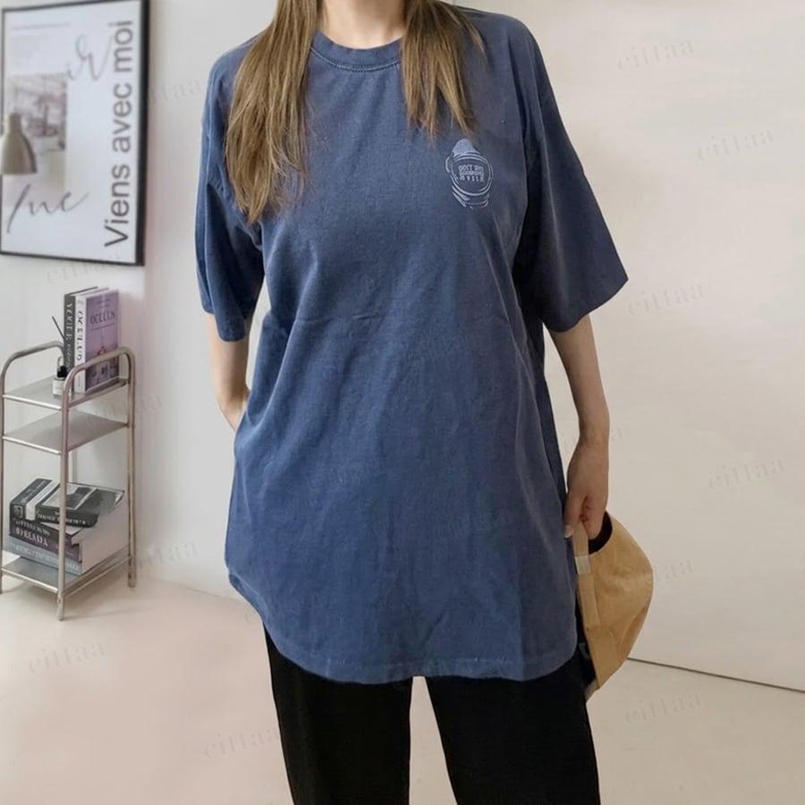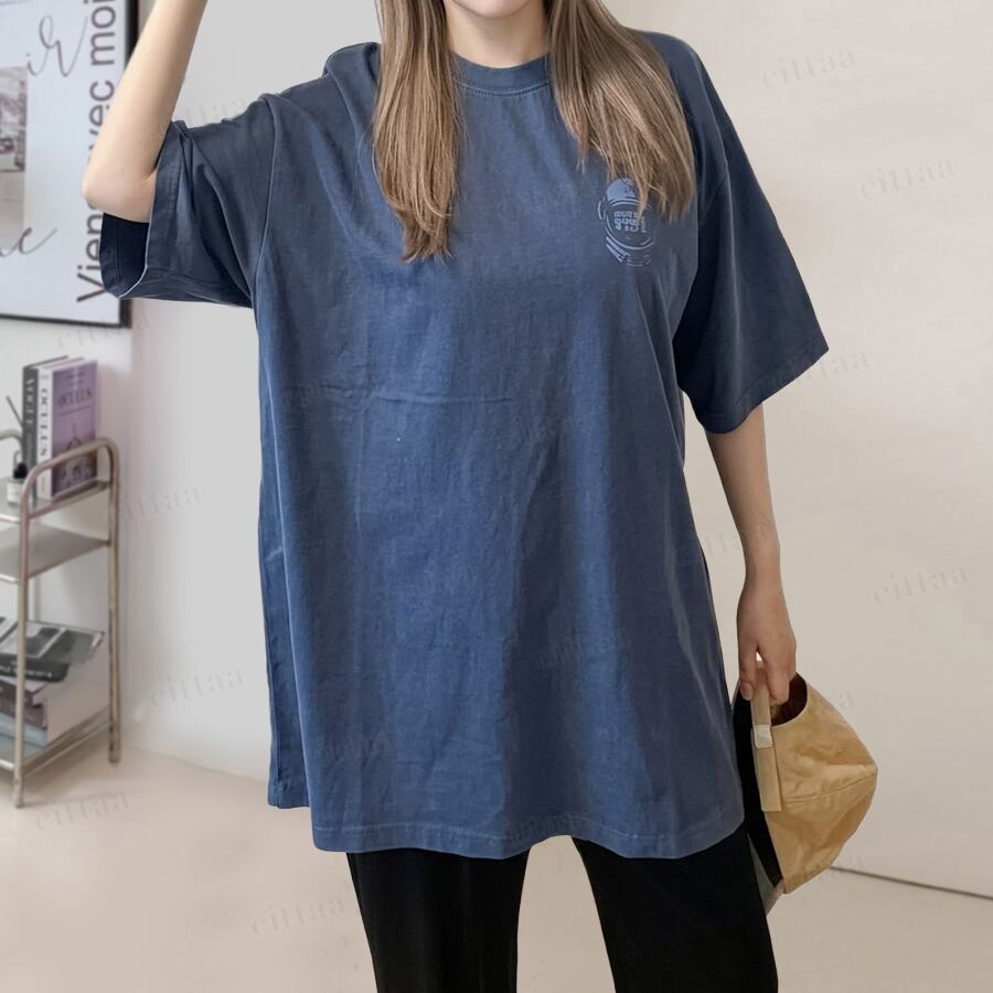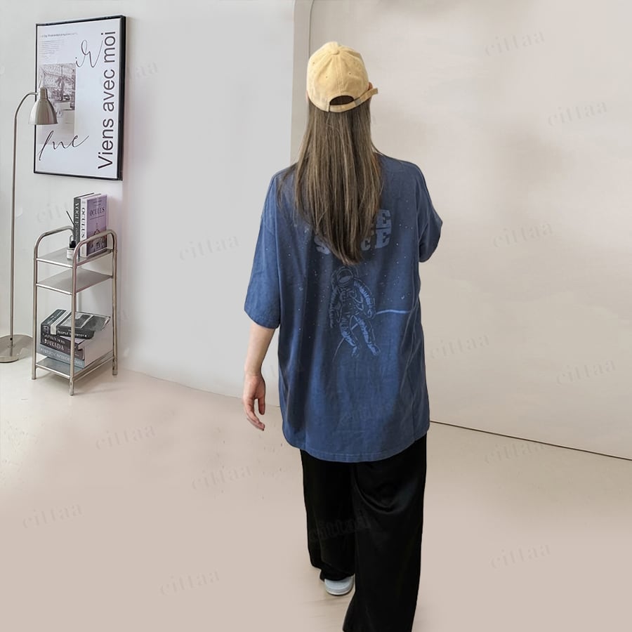 【即納】Y-4882 2026春新作♡SPACEプリントピグメント加工半袖Tシャツ ネイビー 0407
