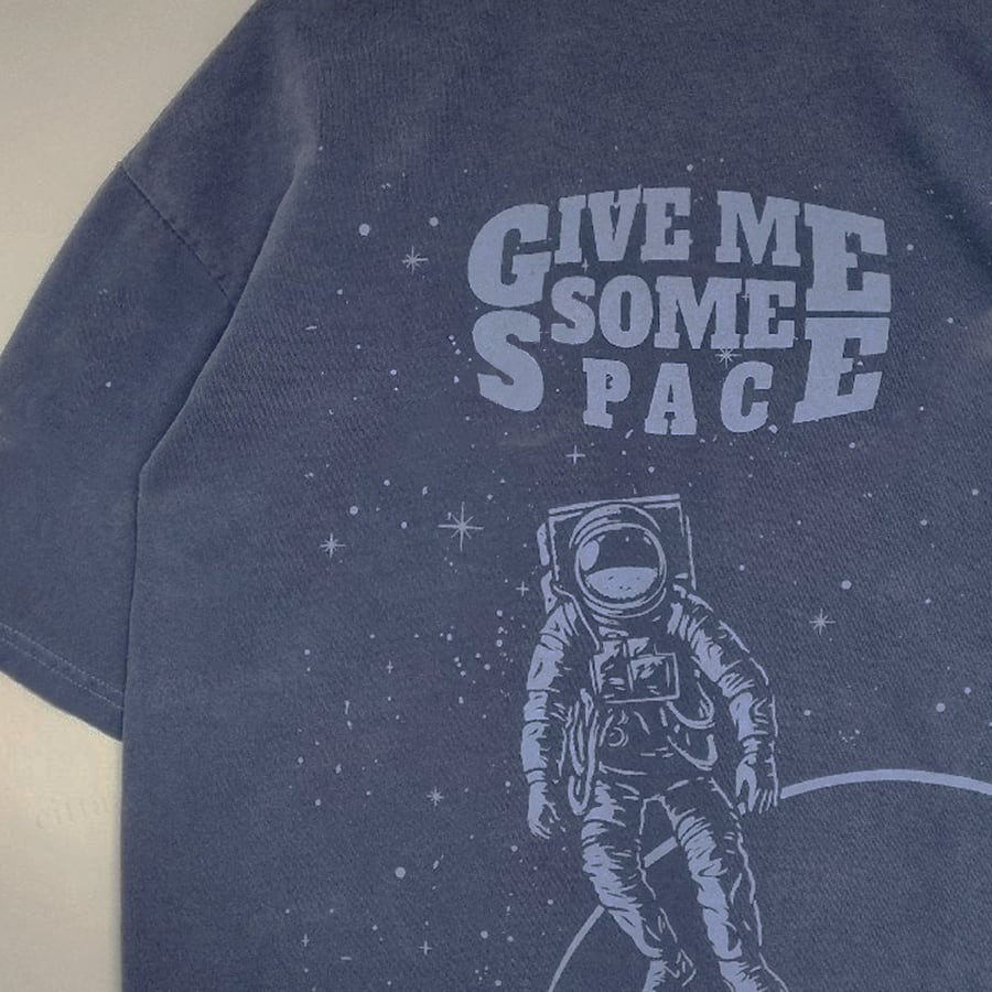 フロントとバックに施された宇宙プリントが目を惹くデザイン。ピグメント加工によるかすれた風合いで、ヴィンテージ感のあるこなれた印象に仕上がります。主張しすぎない絶妙な色味で取り入れやすく、1枚でしっかり着映え。ラフに着るだけで雰囲気のあるコーデが完成します。