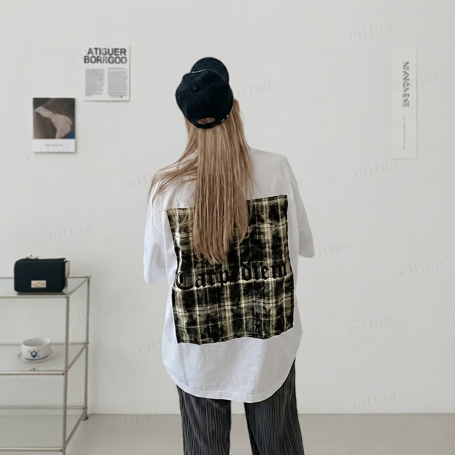 【即納】Y-4909 2026春新作♡Carpedremバックパッチ半袖Tシャツ ホワイト 0422