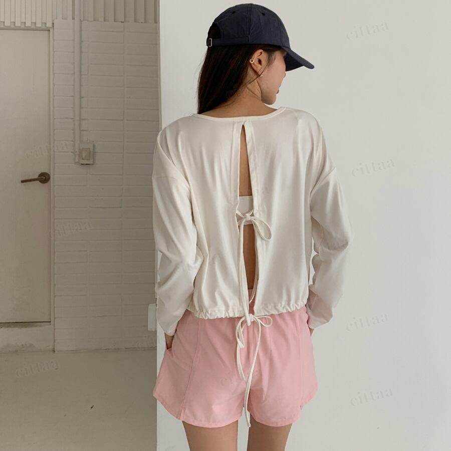 後ろ姿までお洒落に決まるバックリボンラッシュガードトップス