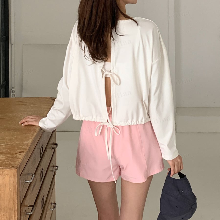 【即納】Y-4904 2026春新作♡バックリボンラッシュガードトップス アイボリー 0422