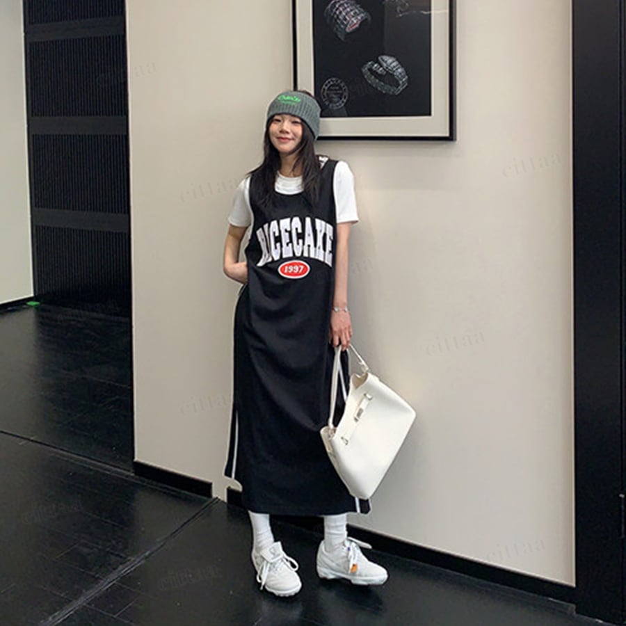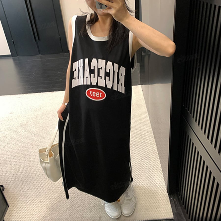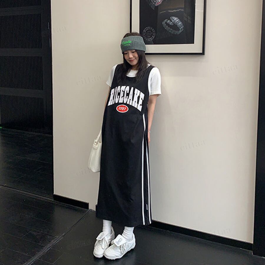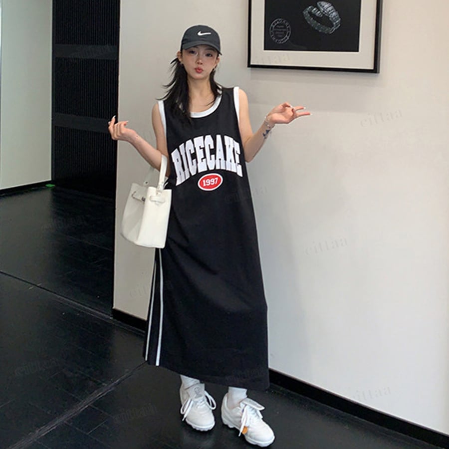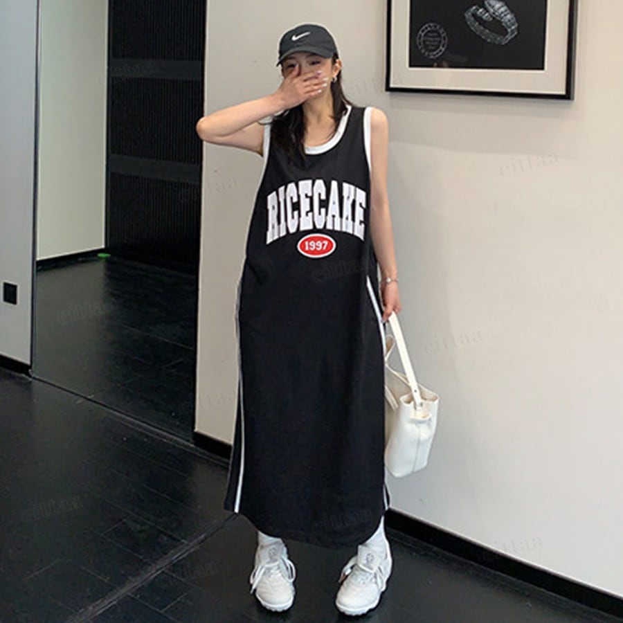 ★予約★D-1161 2026夏新作♡RICECAKEユニフォーム風タンクトップワンピース ブラック