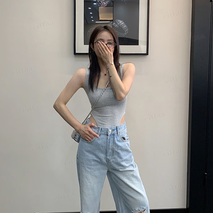 ★予約★D-1154 2026春新作♡バックオープンボディースーツ グレー