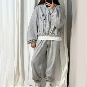 Y-1778 【上下セット】BROOKLYNロゴスウェットセットアップ グレー 0928(Y-2511)