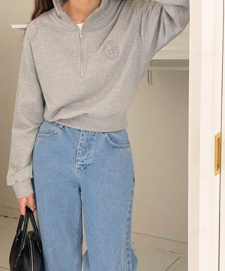 コーデに取り入れるだけで旬な着こなしが楽しめるハーフジップスウェット♡
