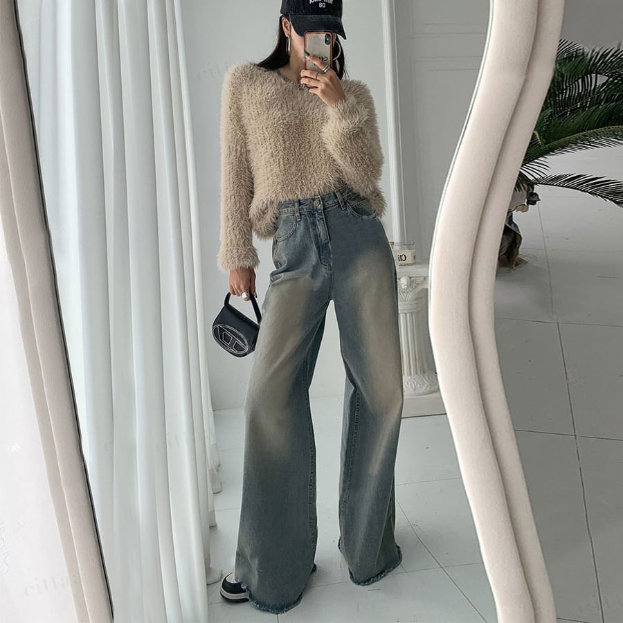 こなれ感抜群ヴィンテージライクな色落ちワイドデニムパンツ♡