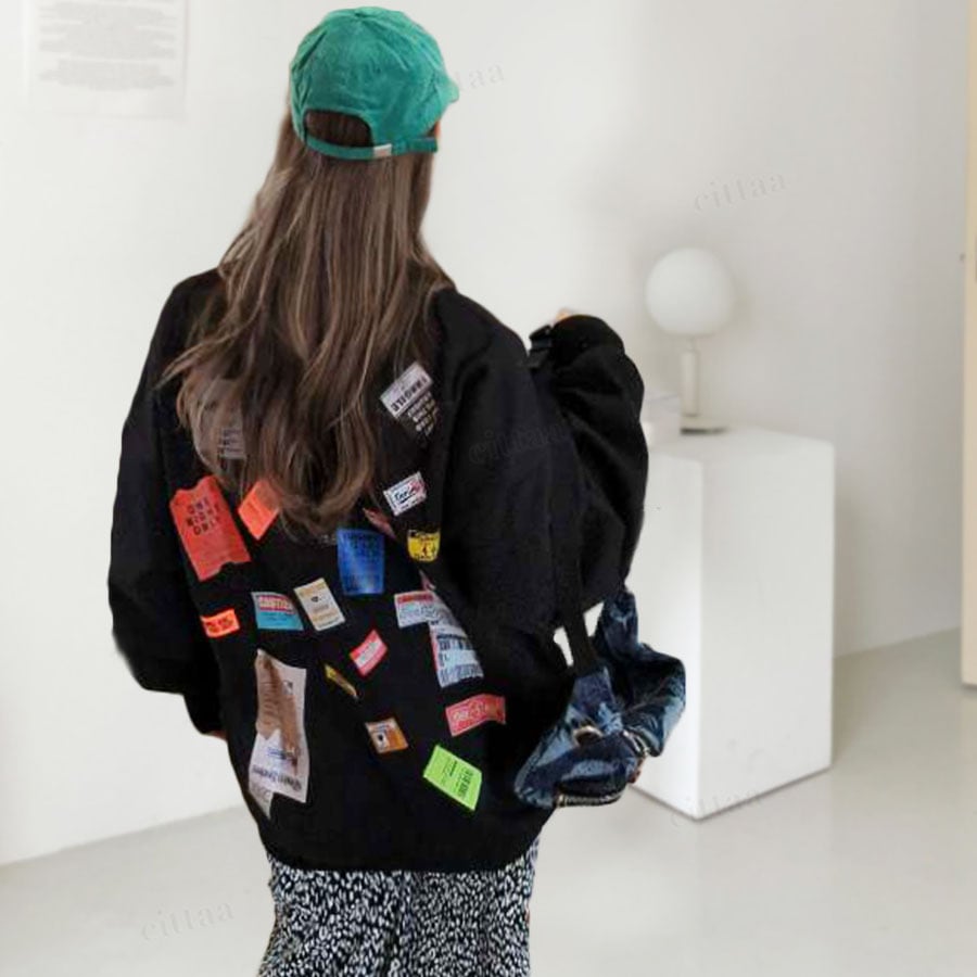 【予約】Y-4188 2025秋冬新作♡ランダムラベルデザインスウェット ブラック 1107