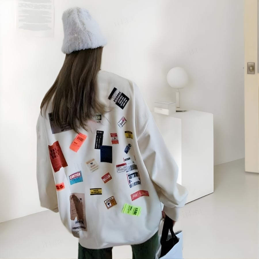 【予約】Y-4188 2025秋冬新作♡ランダムラベルデザインスウェット クリーム 1107