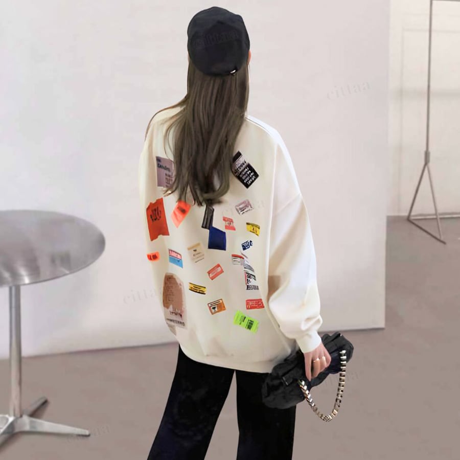ランダムに配置されたバックラベルがお洒落なデザインスウェット♡