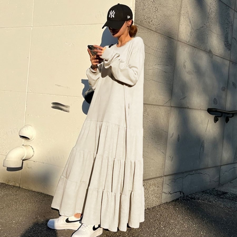 - 韓国っぽティアードロング丈ワンピース