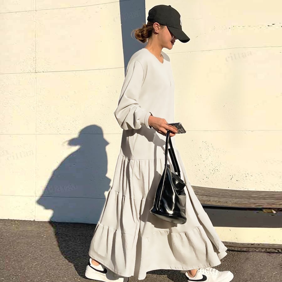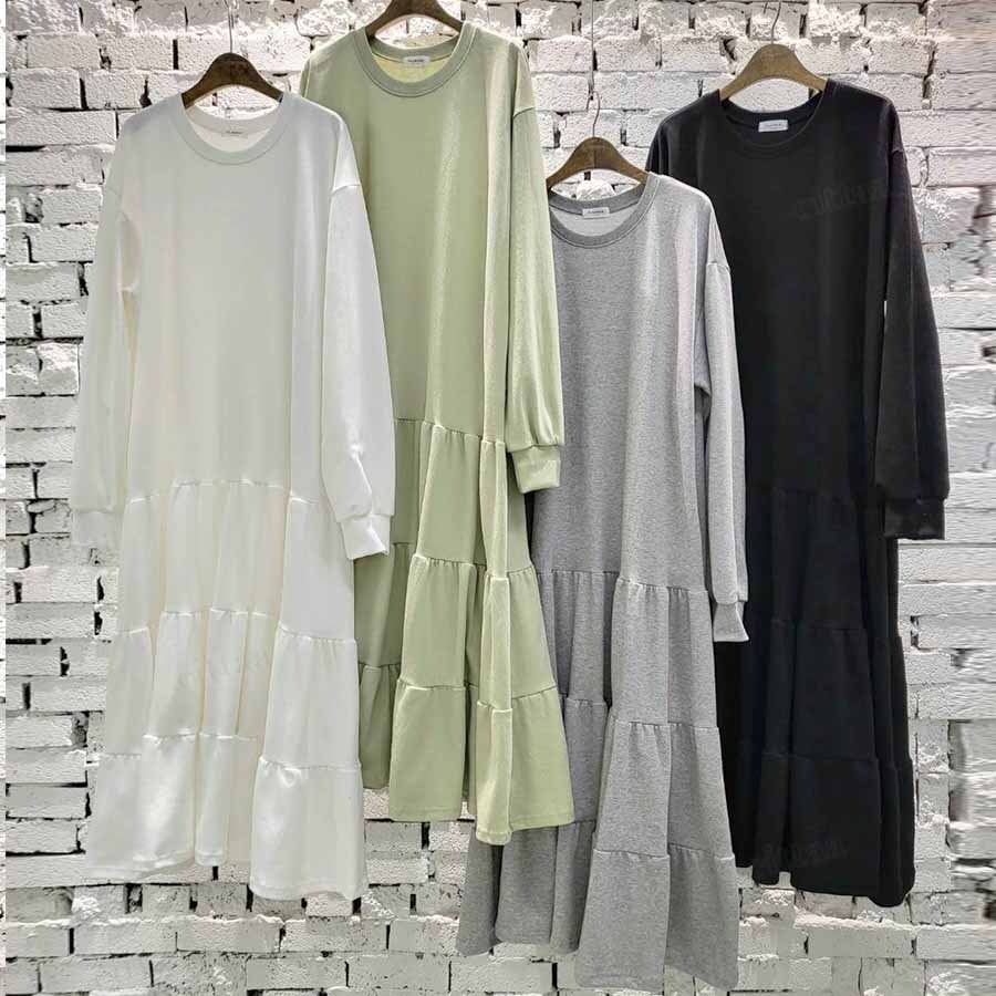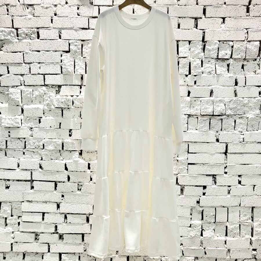 Y-2936【裏起毛なし】新作♡ティアードスウェットワンピース ホワイト 0119