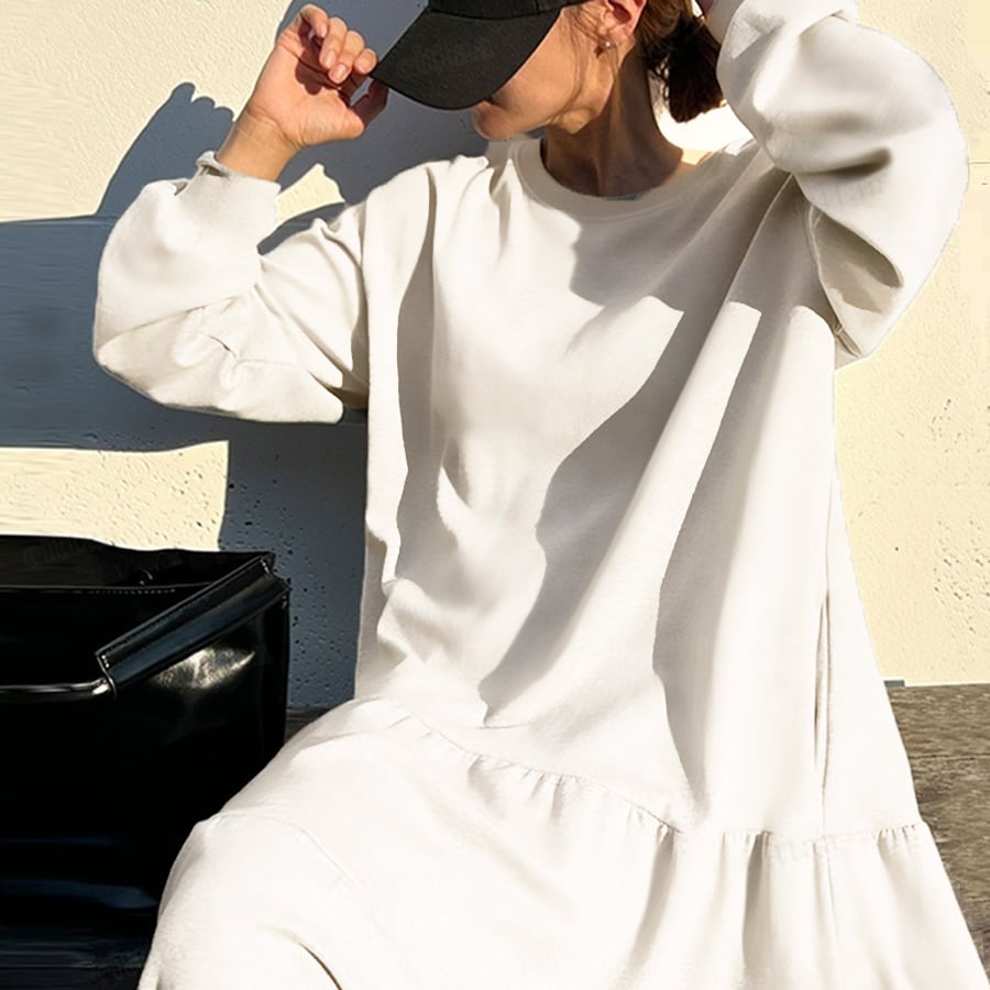 ふんわりボリュームシルエットが大人可愛いスウェットワンピース♡