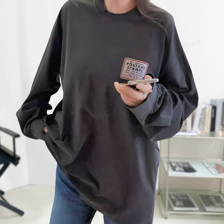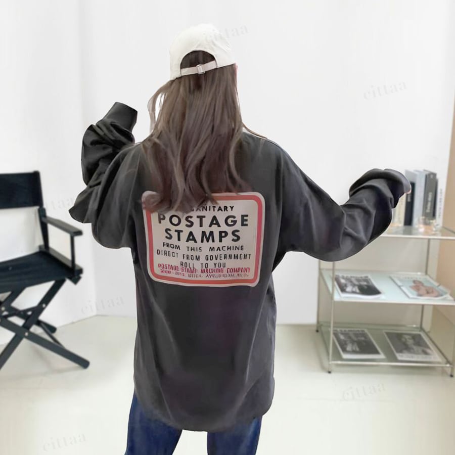 Y-3586 2025秋新作♡POSTAGEヴィンテージプリント長袖Tシャツ チャコール 0827