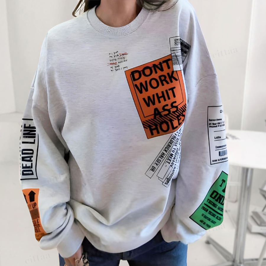ランダムに配置されたラベルプリントデザインがポイントのスウェットプルオーバー♡