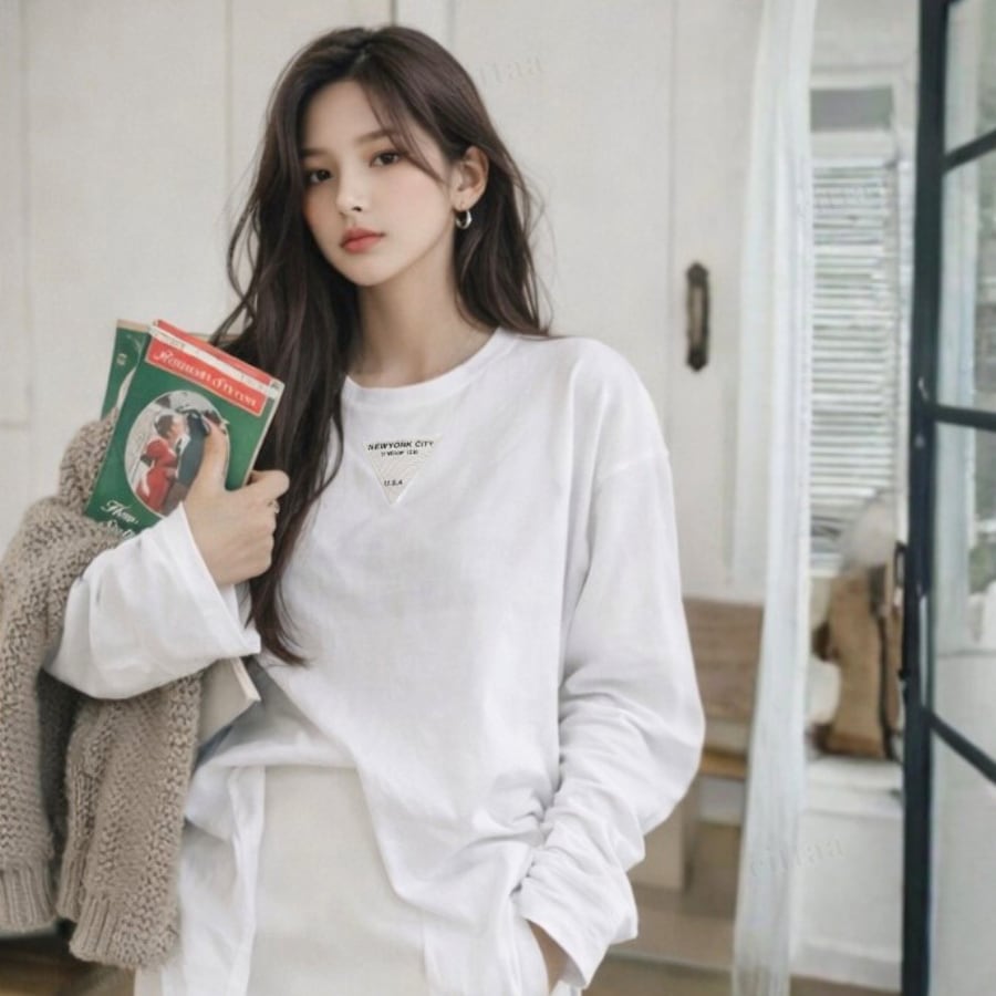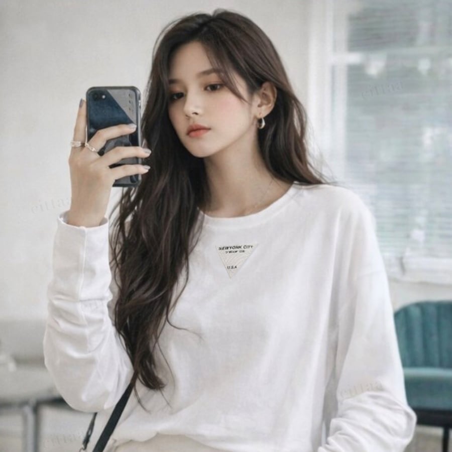 【予約】Y-3815 ♡NEWYORKトライアングルラベル長袖Tシャツ ホワイト