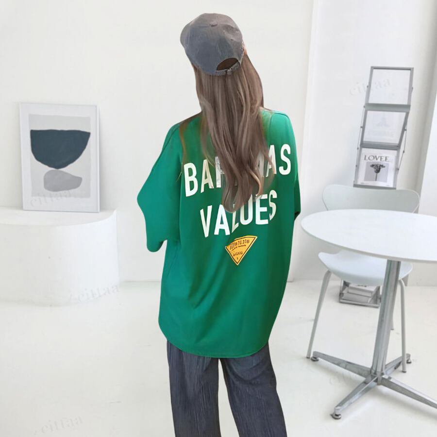 Y-3895 2025夏新作♡BAHAMASバックロゴ半袖Tシャツ グリーン 0228