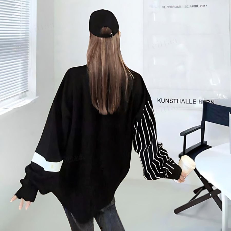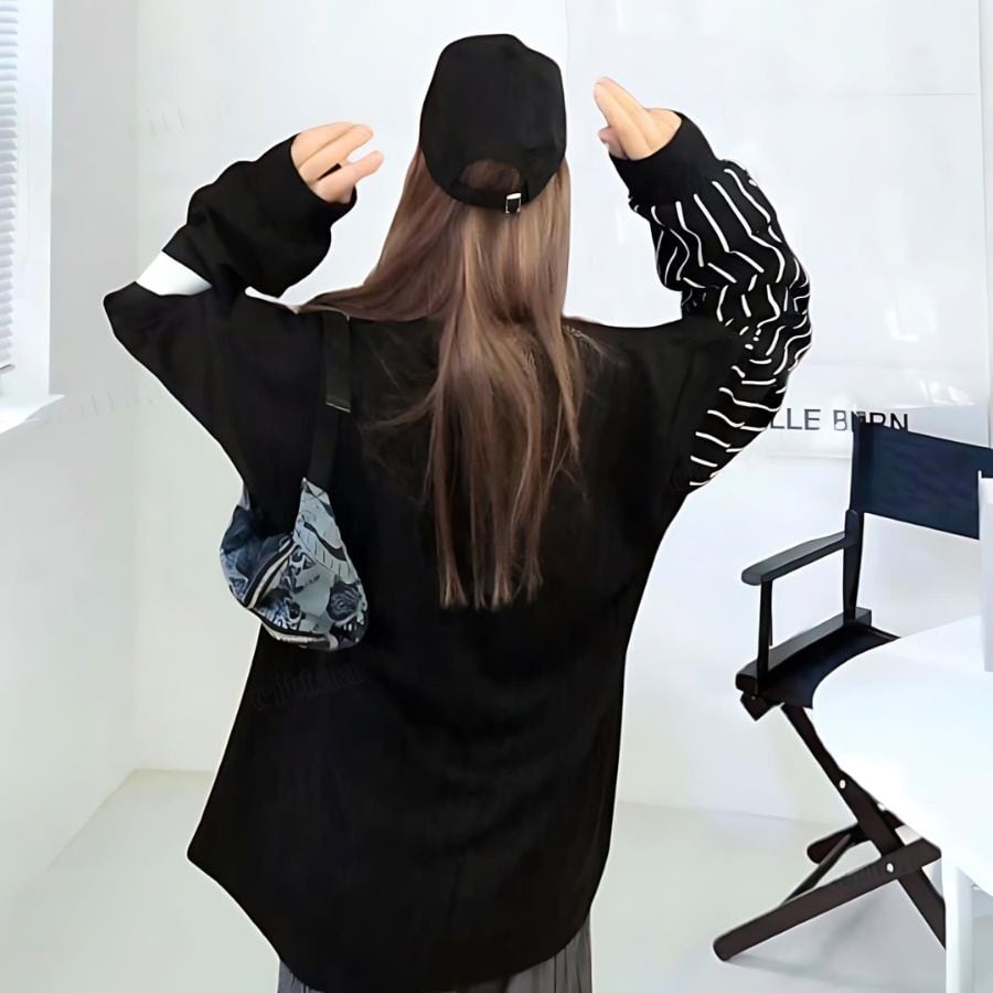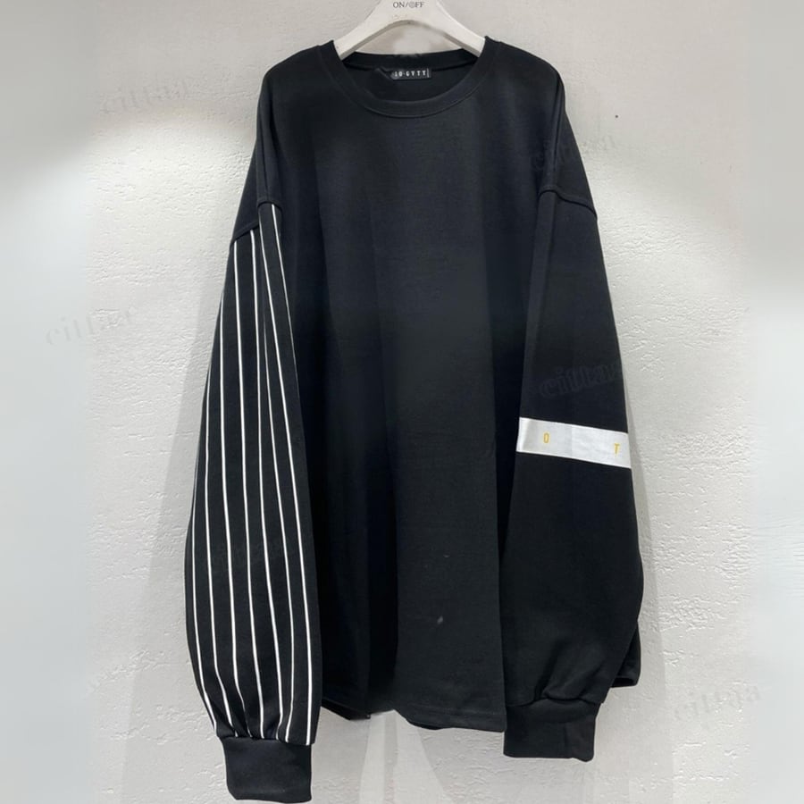Y-4134 2025秋新作♡袖ストライプ×ロゴ長袖Tシャツ ブラック 0826