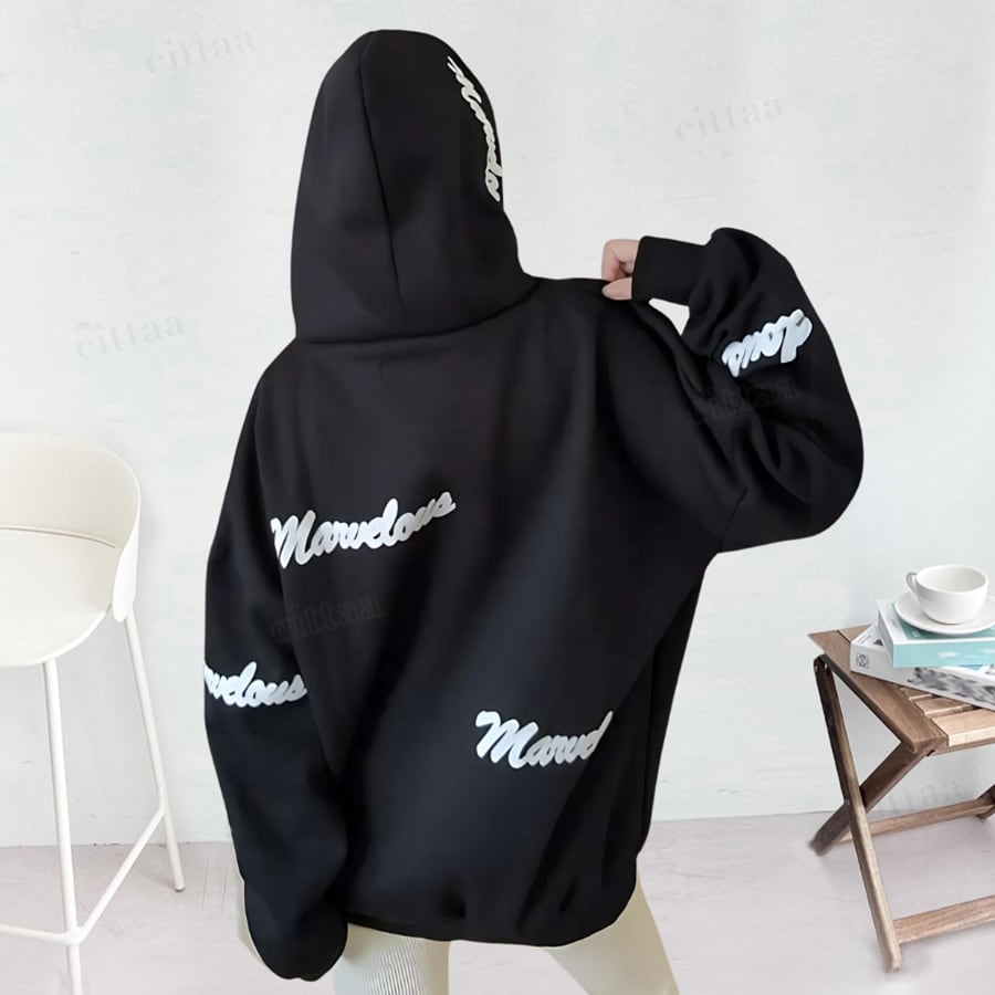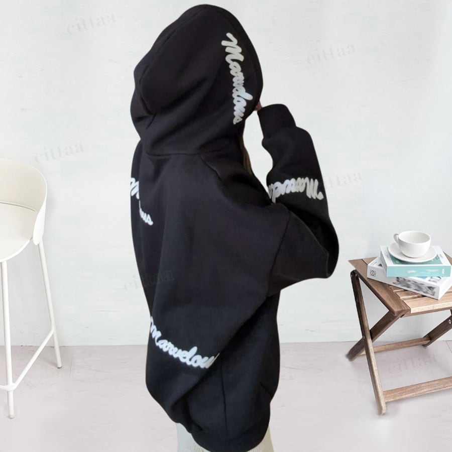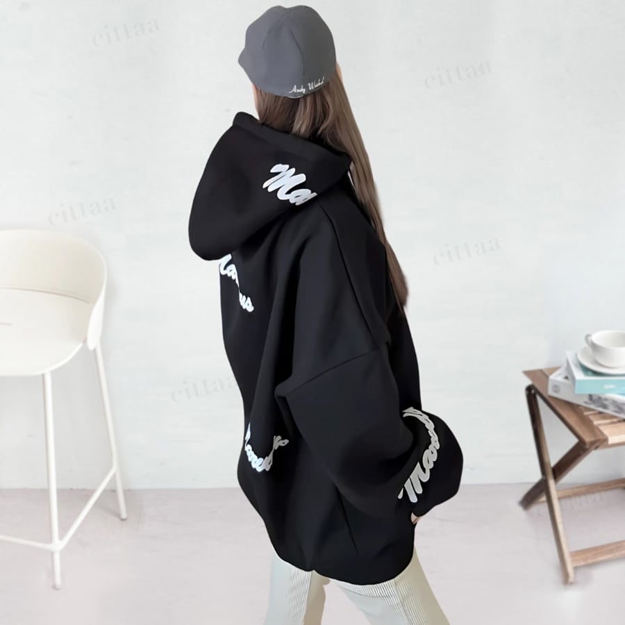 【予約】Y-4381 2025秋冬新作♡Mawdousランダムロゴフーディー ブラック 1107
