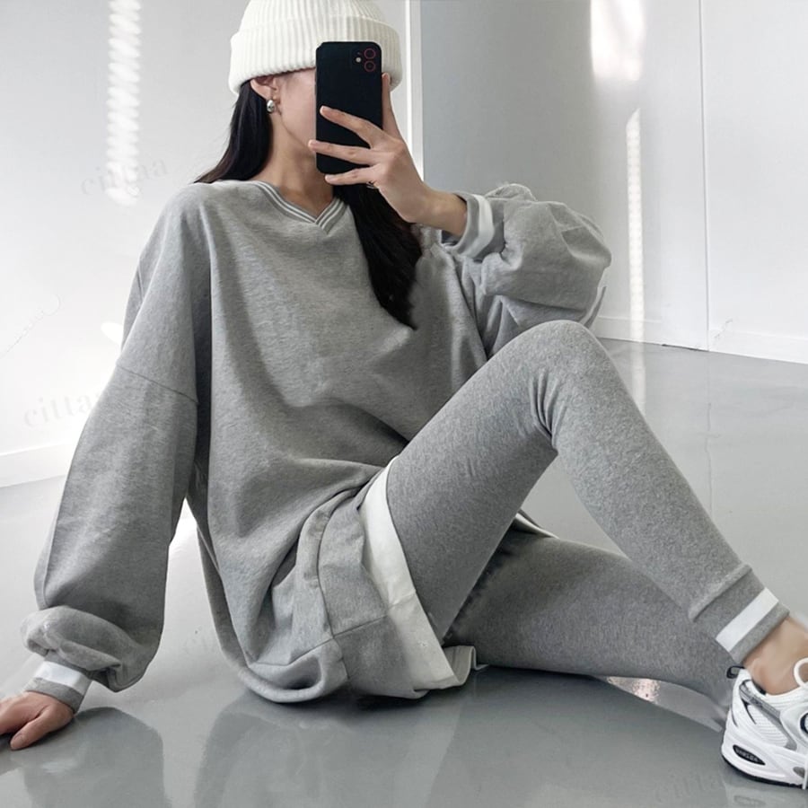 【予約】Y-4441 2025秋新作♡【上下セット】BELIEVEDロゴスウェットレギンスセットアップ グレー 0204